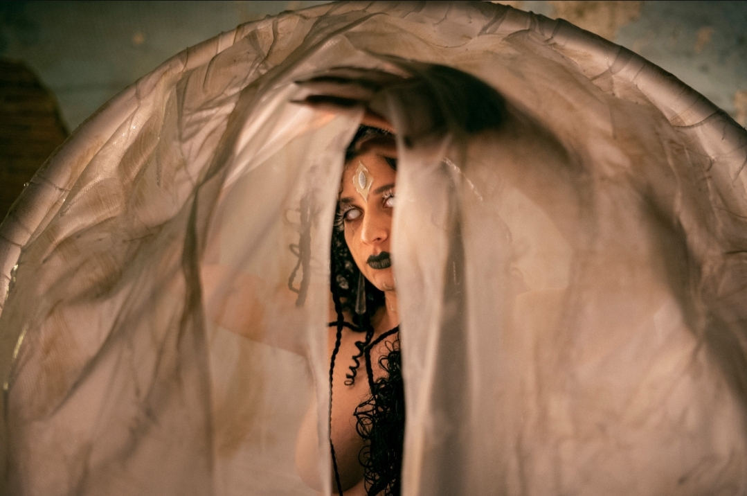 In the whole concept of the video, the scenes shot are dreamlike and have a somber ambiance; the effect of walking into another entire world. One of my favorite moments is when Ævina performs standing right in front of a sculpture of a giant spider which symbolizes reborn and transformation. She has a gothic heroine, with elements of a sci-fi alien, all at once with her costumes, Make-up, and hair.
